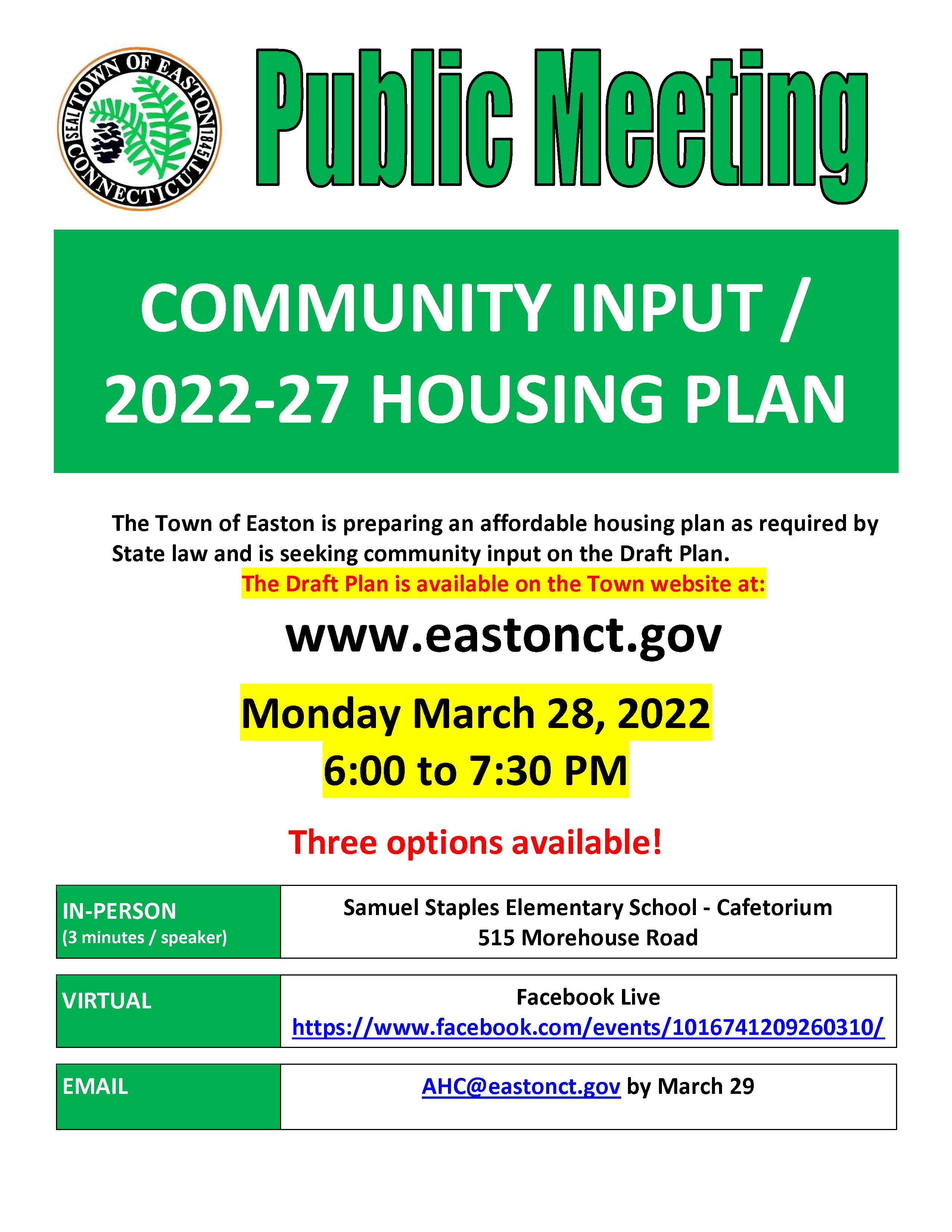 If you wish to have input on this most important issue, please attend or send an email.