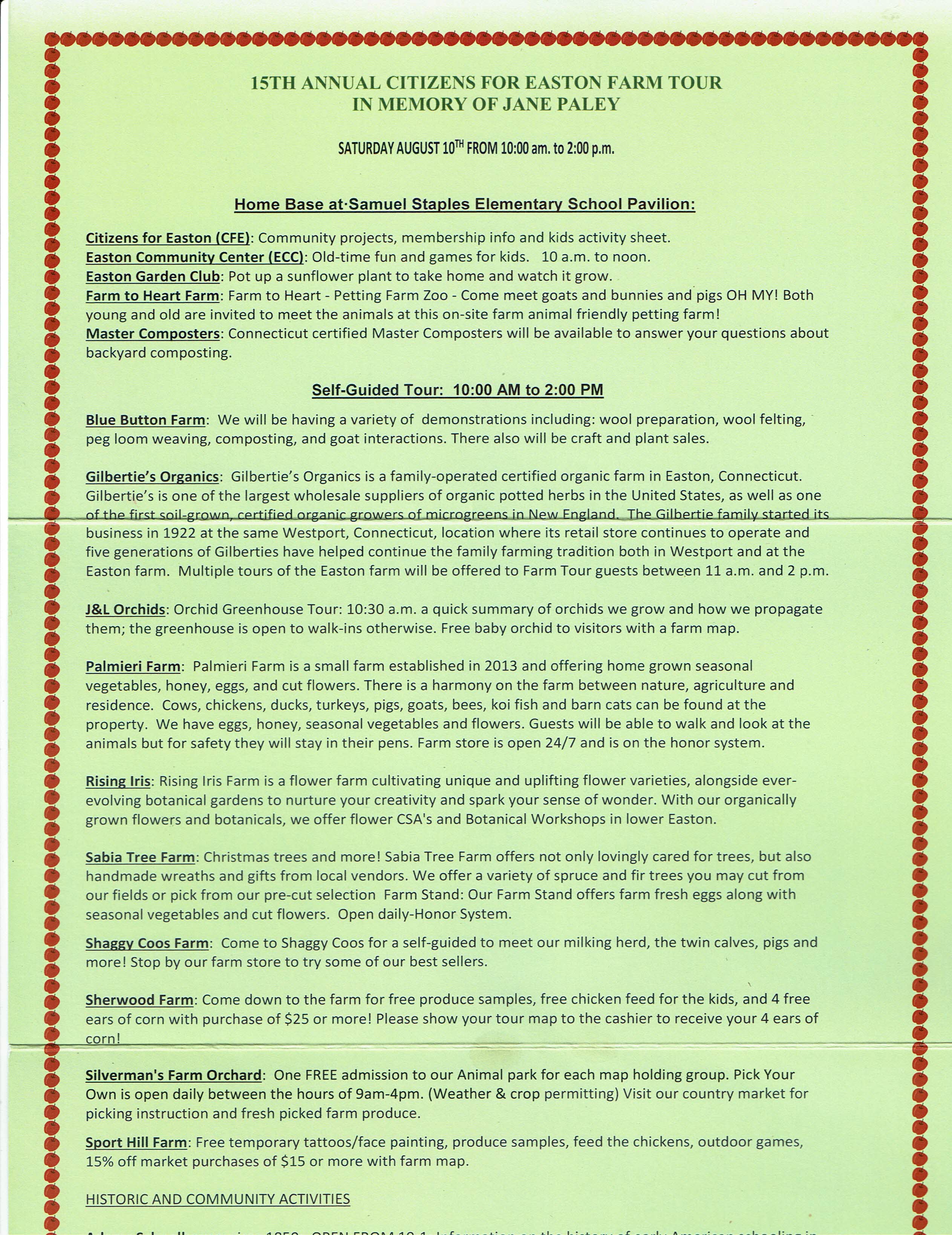 Our 16th Annual Farm Tour promises some exciting new additions, which you will discover upon your arrival at the SSES Pavilion. See below to see a sampling of what was offered for our 2024 Farm Tour.